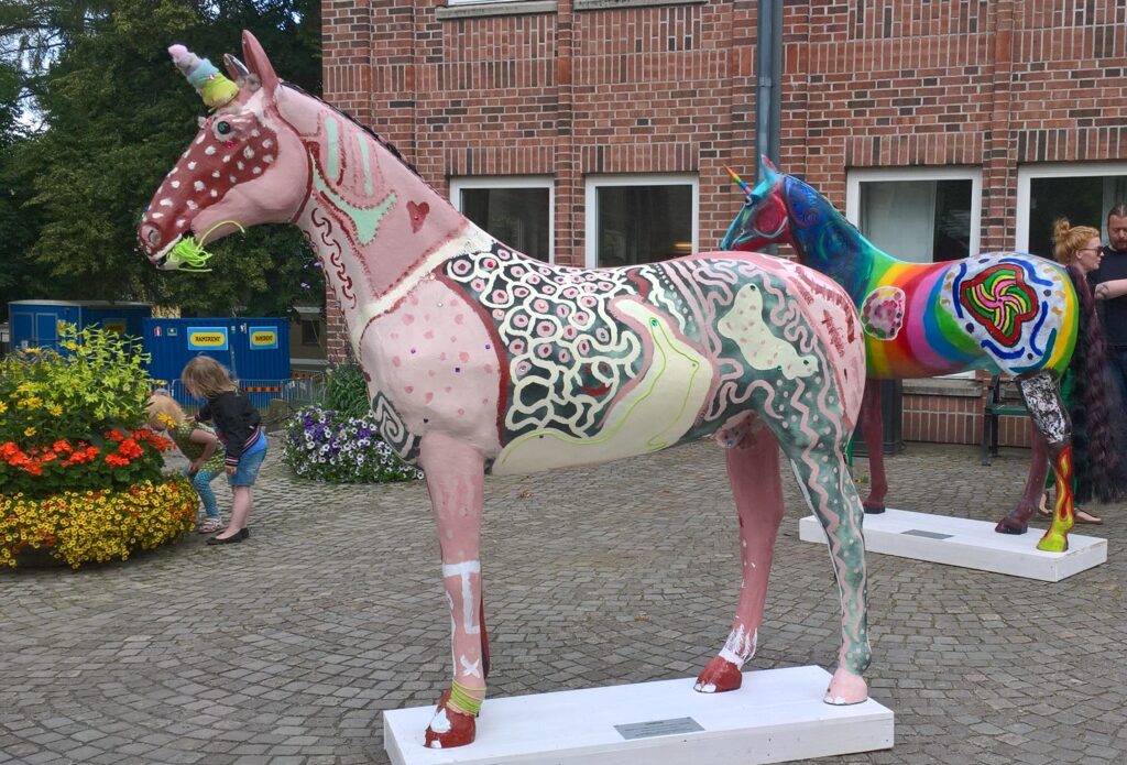 Häststatyerna är framtagna i samarbete med lokala konstnärer samt barn och